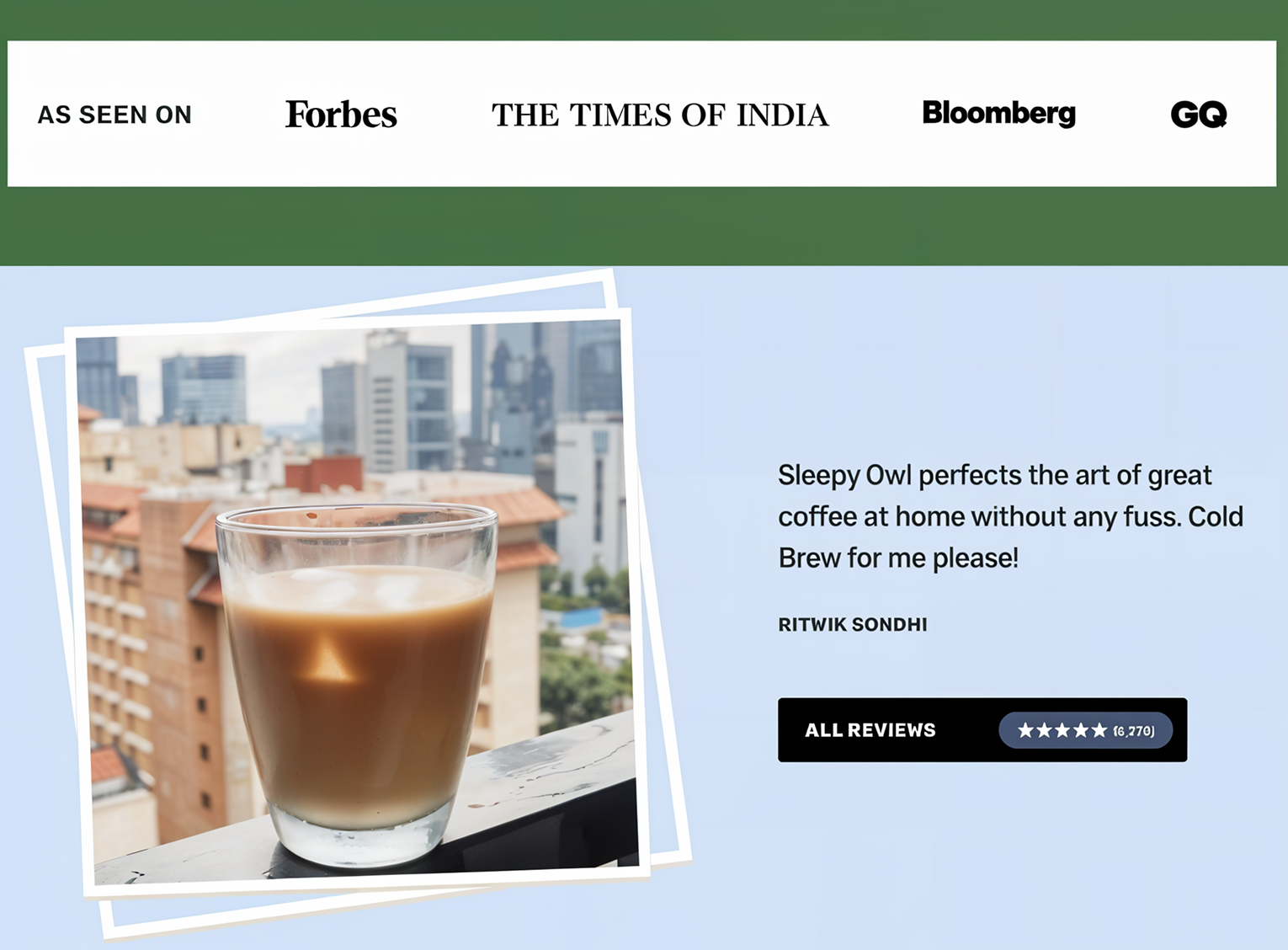 Sleepy Owl’s website design is visually appealing with high-quality images and curated reviews to showcase products.