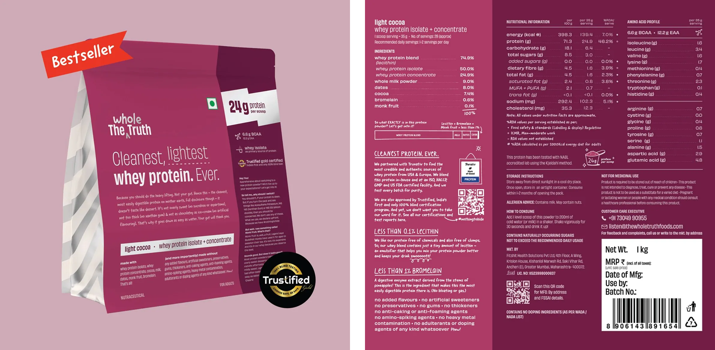 The next step isn’t about reducing information particularly in the product The Whole Truth Whey Protein but refining how it’s structured: clear tiers of communication that balance credibility through words along with the design.