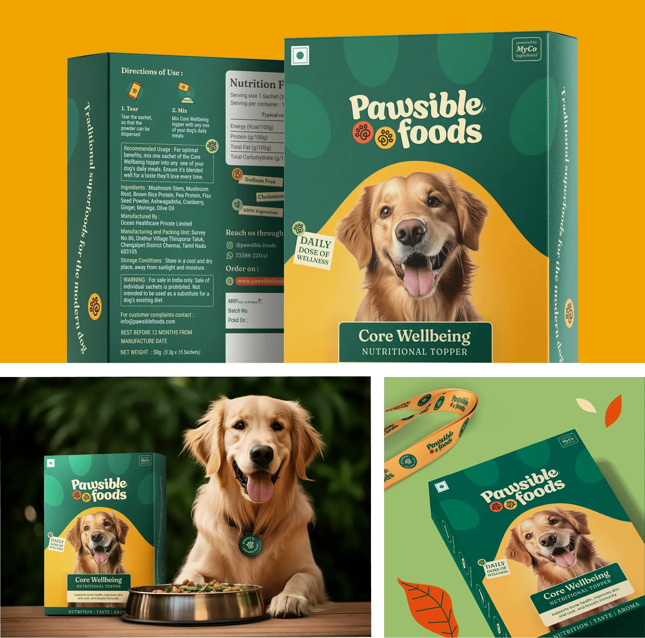 Our packaging & design experts at Confetti, navigated this balance in our work with Pawsible Foods, a sustainable pet nutrition brand redefining its category with eco-conscious products for pet parents. Their story was rich, yet their packaging couldn’t afford to be text-heavy or verbose. We built a communication system that distributed storytelling across visuals and words blending a bold, nature-loving tone with a clean, spacious layout. Every element worked together to communicate purpose without overwhelming the customer.