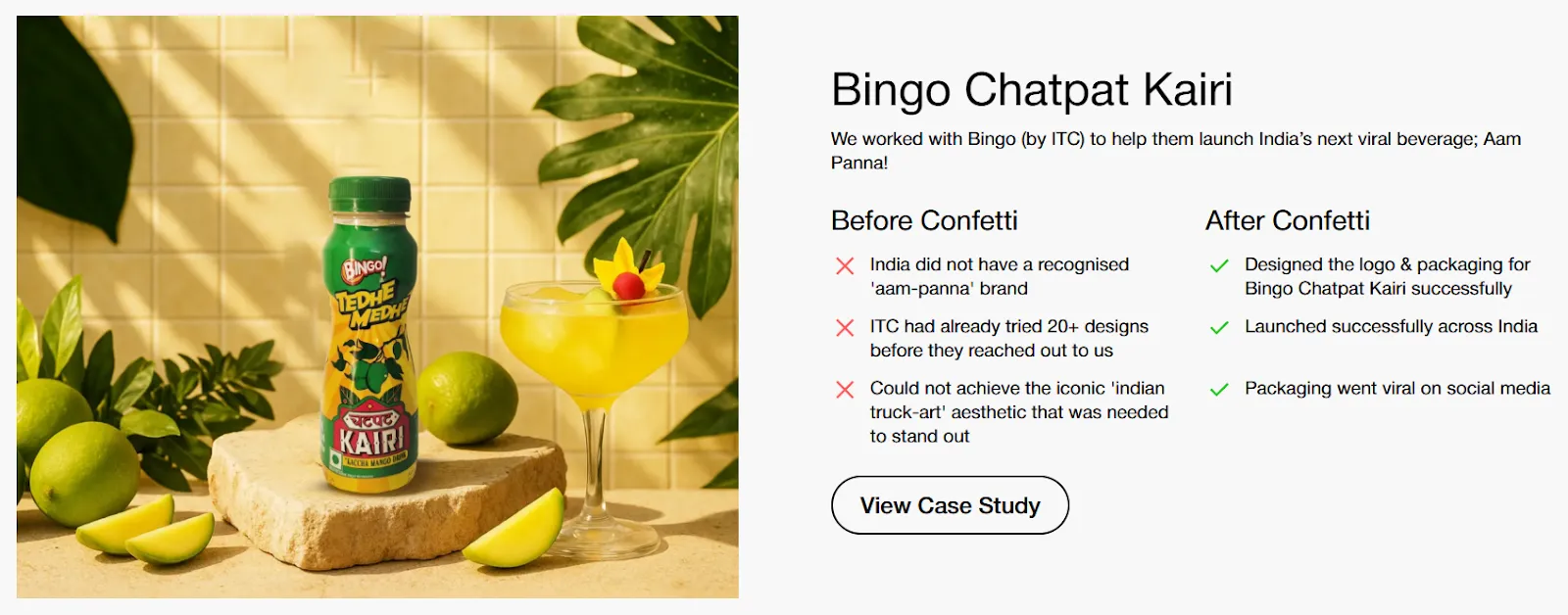 Confetti treats packaging as a brand's silent salesman. That framing is deliberate.