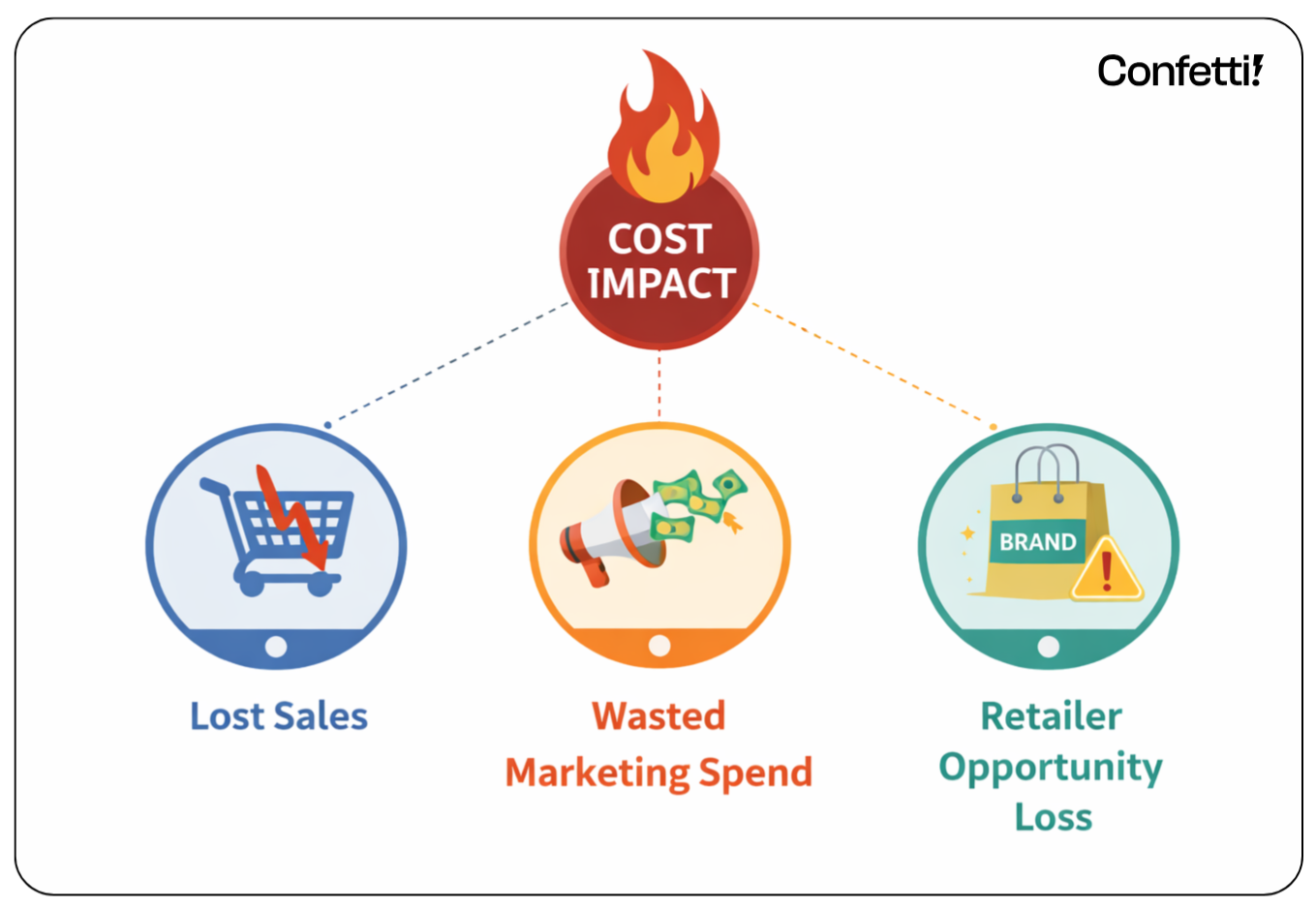 Retailers may allocate your shelf space to competitors if you cannot deliver on time. Marketing campaigns go live without product availability, wasting budget and weakening impact.