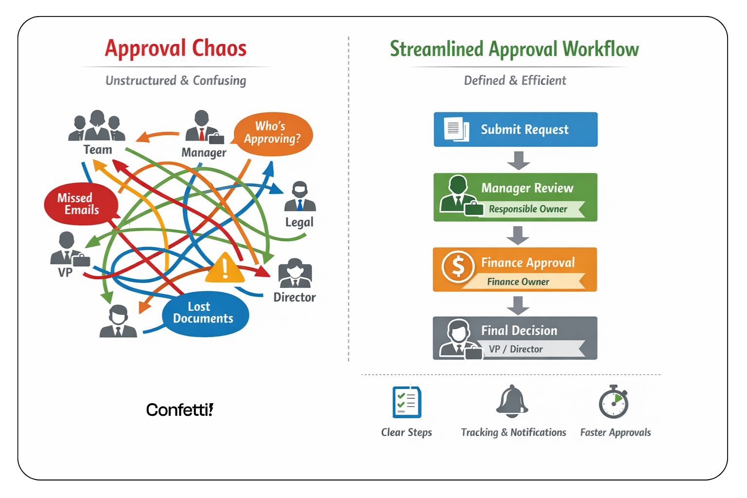To fix this, you need a structured approval workflow. Every stage should have a clear owner who is responsible for sign off.