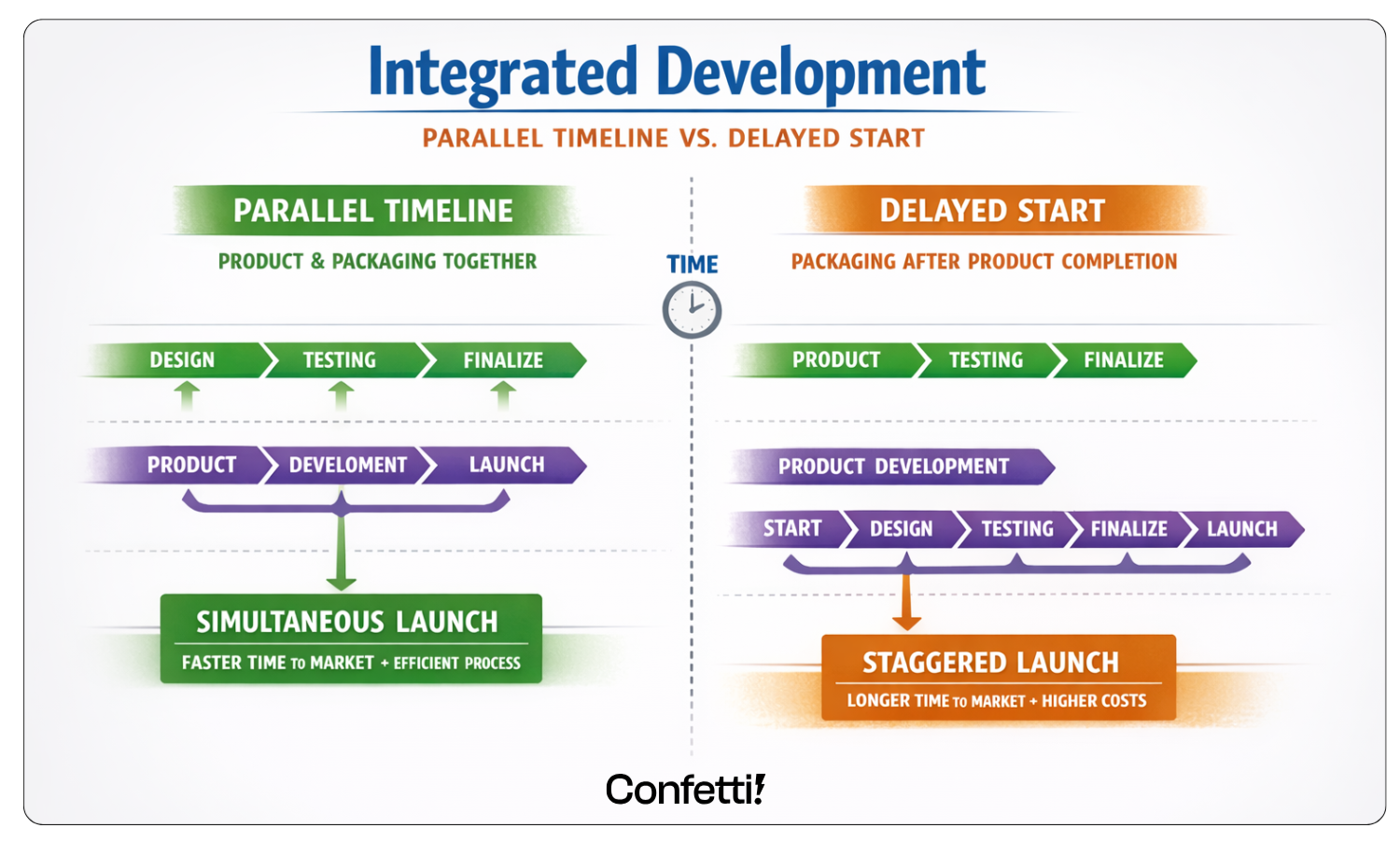The smarter approach is to treat packaging as a parallel workstream. When you start early, even with rough concepts, you create alignment across teams.