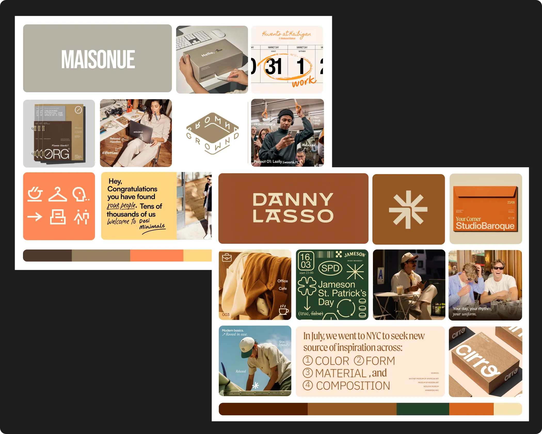 General inspiration boards are often about collecting things that look good. Mood boards, when done properly, are about making decisions. They’re built to guide the work that follows, not just to merely decorate a presentation. Every image, texture, and reference is chosen for a reason, tied back to what the brand is trying to communicate. Without that intent, inspiration stays subjective and doesn’t translate into consistent design.