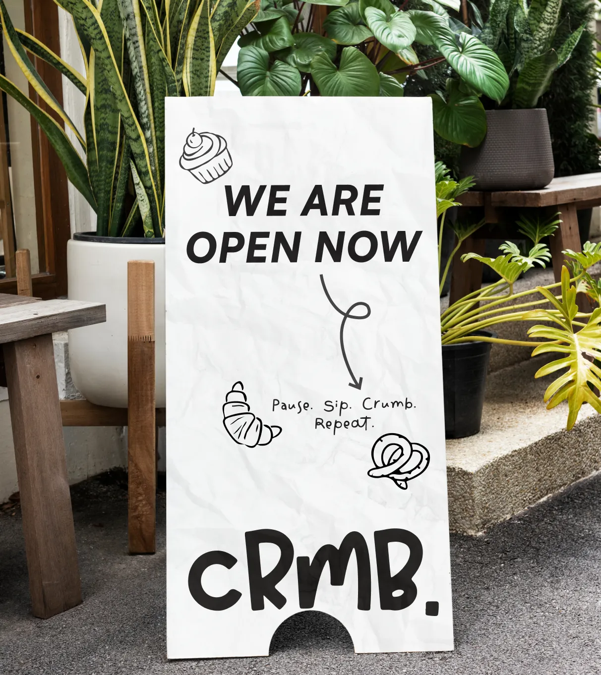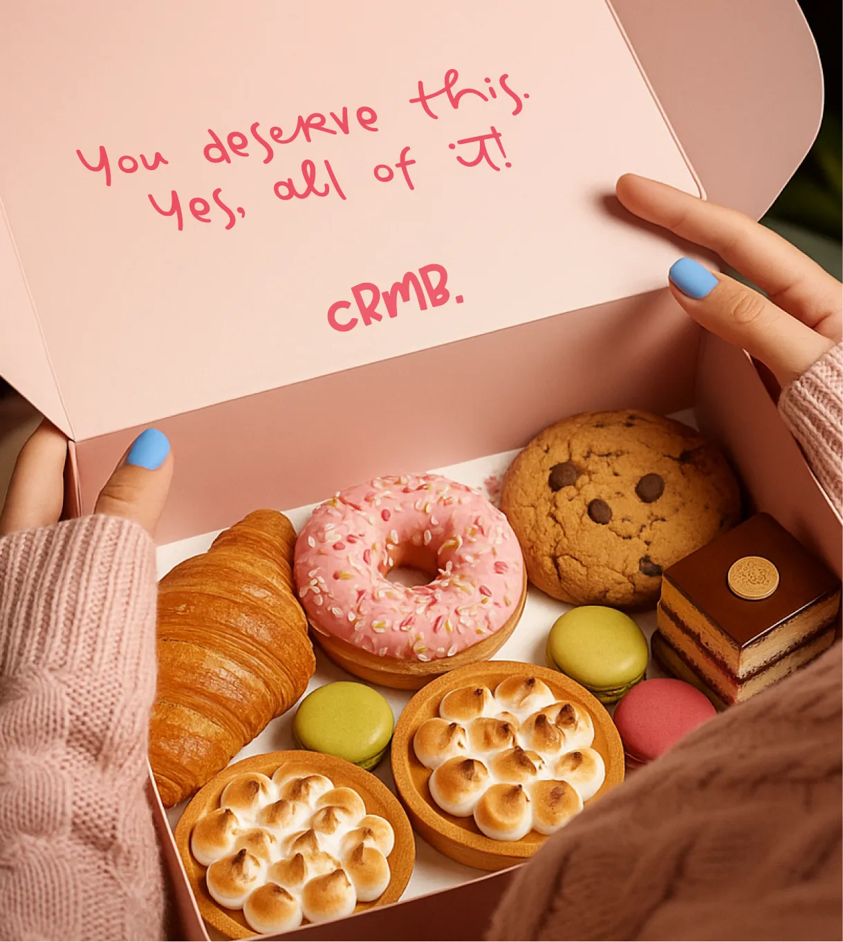 The name CRMB comes from the simple joy of eating something truly delicious like cookies, pastries, croissants, always leaving behind a little “crumb.” By removing the U, the word becomes more modern, fun, and visually striking, adding personality while staying rooted in the brand’s essence. The name reflects the heart of the patisserie experience: small moments of pleasure, tiny details of craft, and the playful imperfections that make food feel real and joyful.