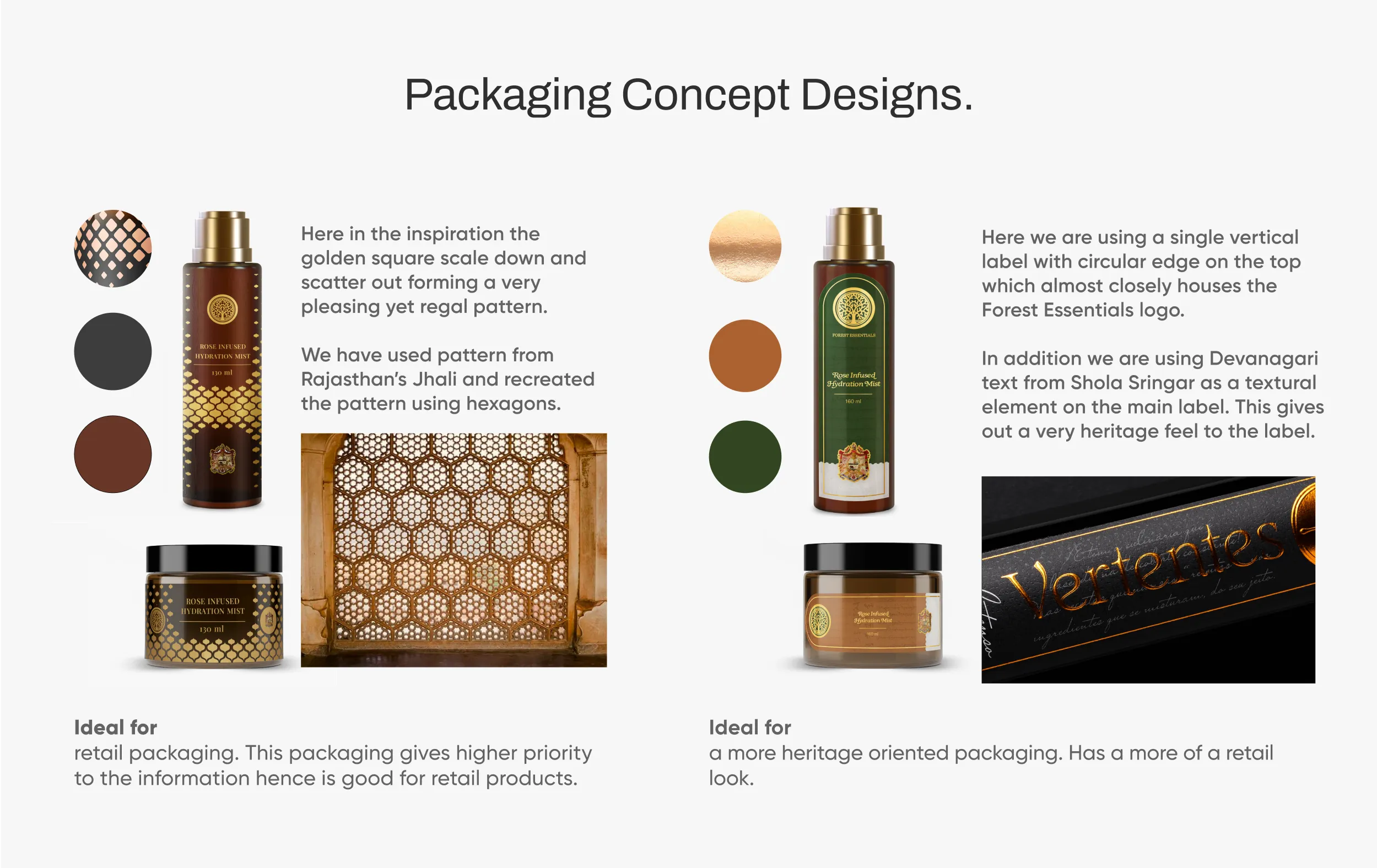 After collaborative discussions with Forest Essentials, three final concepts were shortlisted to ensure the packaging aligned seamlessly with the Royal family’s heritage and preferences.