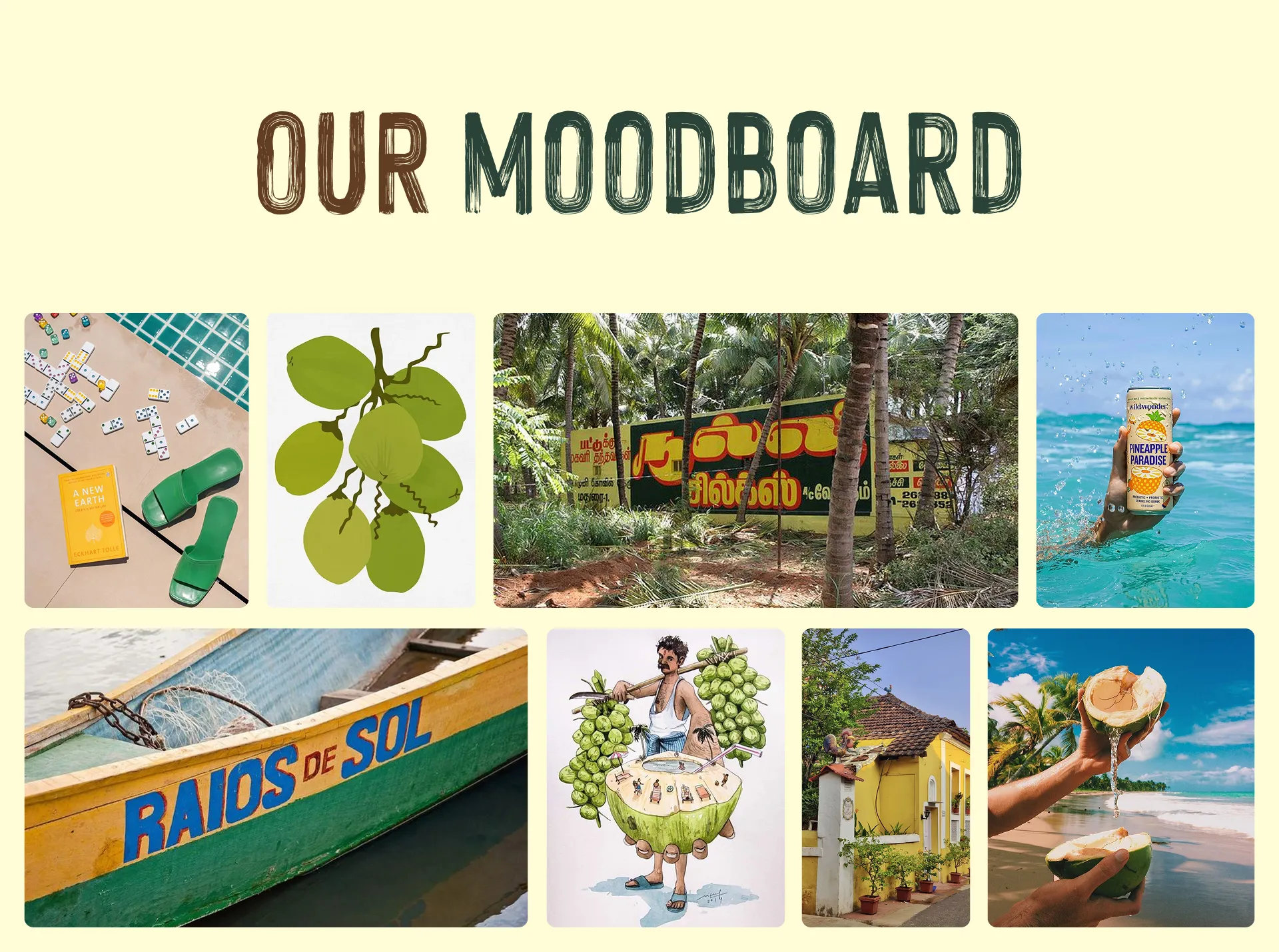 Confetti approached the packaging by observing how coconut water exists in real life across India. From handwritten boat names along the coast to roadside coconut vendors and hand-painted signboards, we drew inspiration from visual cues that feel human and lived-in. Instead of building a hyper-polished tropical fantasy, we focused on translating these everyday references into a refined illustration and typography system. The goal was to make the pack feel familiar by capturing the spirit of the coast without literalising it.