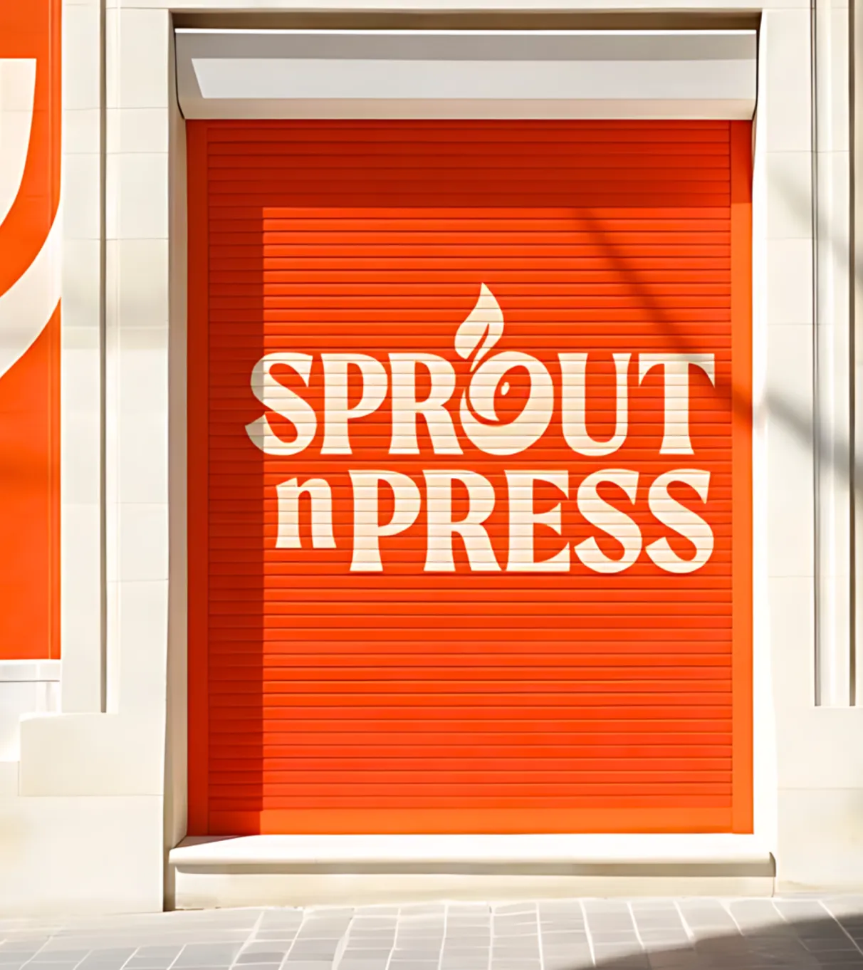 Confetti created a visual system that mirrors the essence of Sprout and Press: warm, organic and deeply rooted in nature. At the heart of the logo is a stylised sprouting seed formed within the O, symbolising growth, vitality and natural beginnings. The upward motion of the sprout represents life, nourishment and the philosophy of food that heals from within.