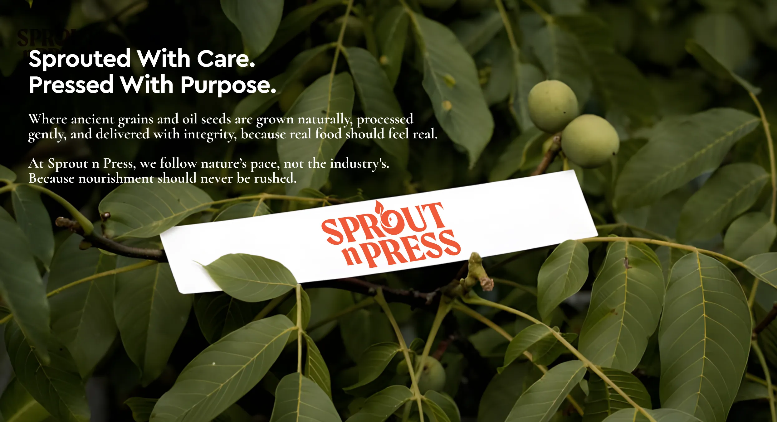 Sprout and Press is a clean label nutrition brand built on the belief that food should nurture the body, the planet and the people who share it. Specialising in cold pressed oils and heritage millets, the brand brings together traditional extraction methods, responsible sourcing and a philosophy that views food as a deeper connection to nature. Confetti partnered with Sprout and Press to shape a warm, grounded and authentic identity that reflects their purpose driven approach. The goal was to create a brand that feels both premium and deeply human, capable of uniting families and communities through pure, nutrient rich ingredients designed for all ages and all lifestyles.
