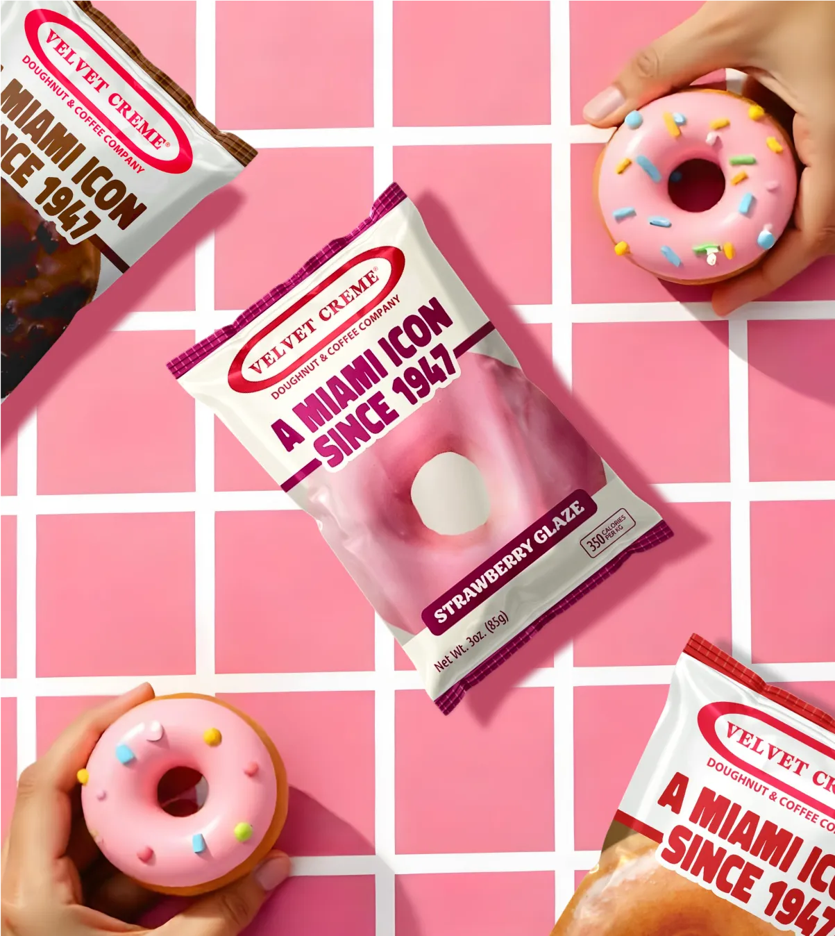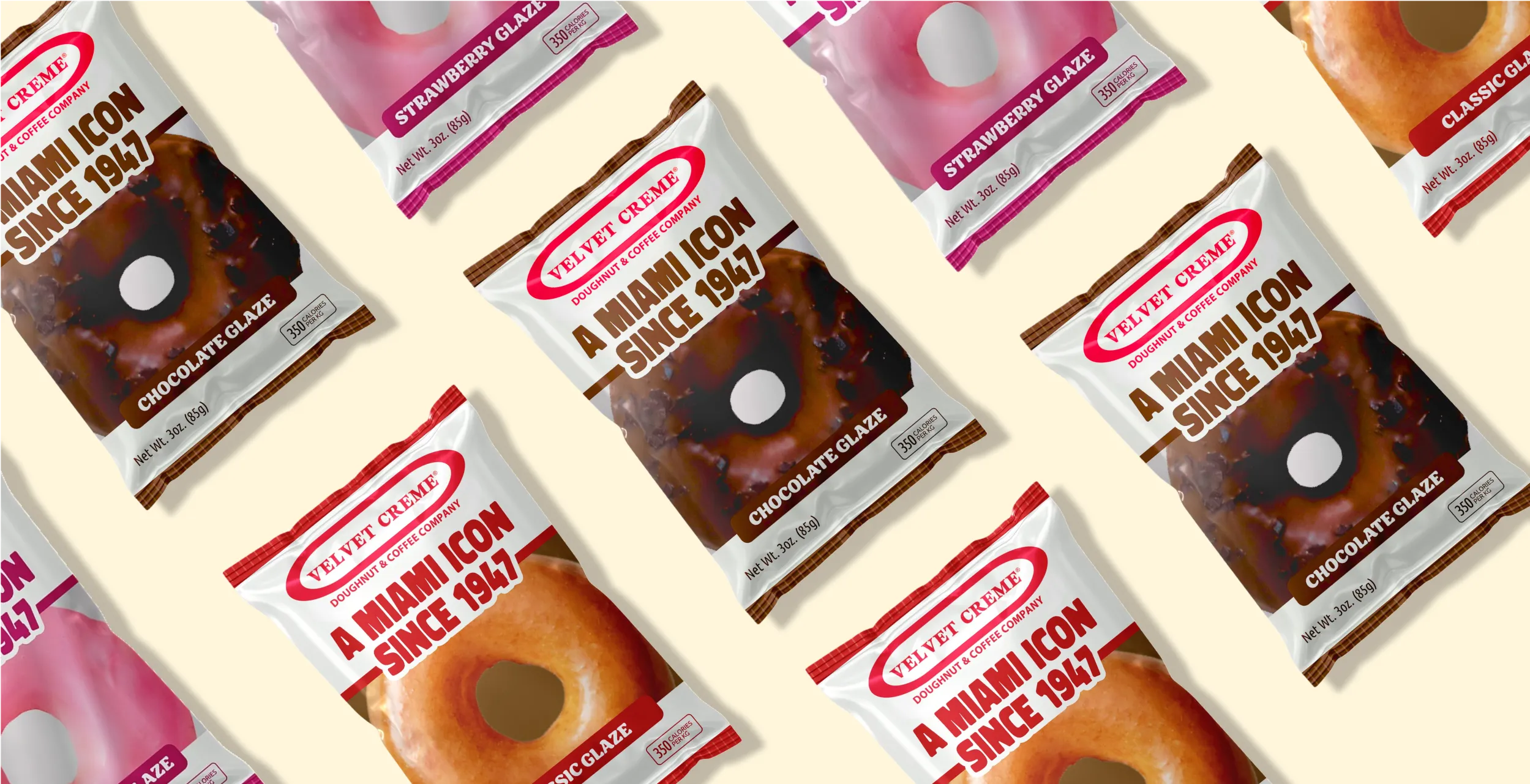 Since 1947, Velvet Creme has been a Miami icon, a name synonymous with handcrafted doughnuts and nostalgic indulgence. But as they expanded into modern markets, tehy realized their packaging needed to do more than just carry their products; it needed to tell their story. So they re-designed their packaging to capture their heritage while appealing to a new generation of sweet-toothed fans. The goal was simple: make a packaging as unforgettable as the flavors.