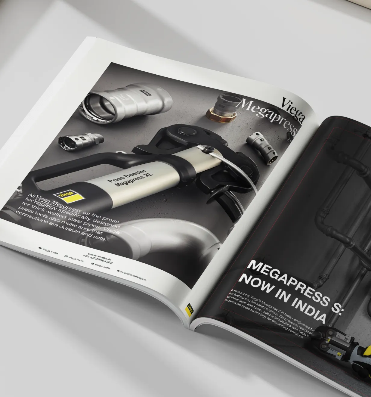 Confetti extended Viega’s brand beyond digital platforms by crafting a comprehensive suite of physical marketing assets that strengthened visibility, culture and everyday brand experience. From WhatsApp invites, event announcements and on ground banners to booklets, award designs, notebooks and magazine layouts, every asset was created to communicate consistency, credibility and purpose. Our work also shaped the physical environment of the brand, with office graphics, colour themes and wall installations designed to make the workspace feel aligned with Viega’s identity and values. This environmental branding not only elevated the aesthetic experience for employees and visitors but also reinforced a shared sense of pride and culture within the organisation. Through these thoughtfully designed touchpoints, the brand now lives cohesively across digital, print and space, creating a unified and impactful presence at every level.