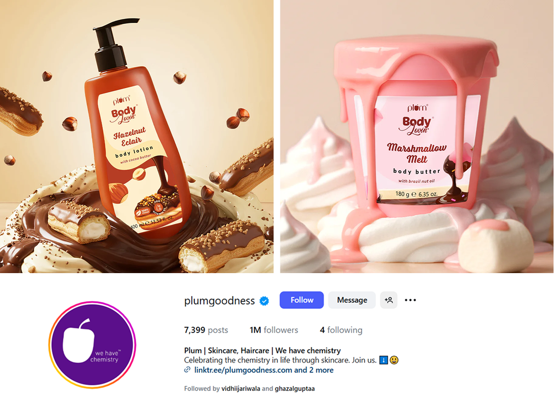 Plum has also shown a willingness to explore newer tools like AI-generated visuals, but it does so carefully. AI is used as an enhancement, not a shortcut. The output still aligns with the brand’s visual language and does not feel disconnected from reality. This consistency across packaging, website, and social media reinforces trust. Customers know what to expect from Plum, and that predictability is valuable in skincare.