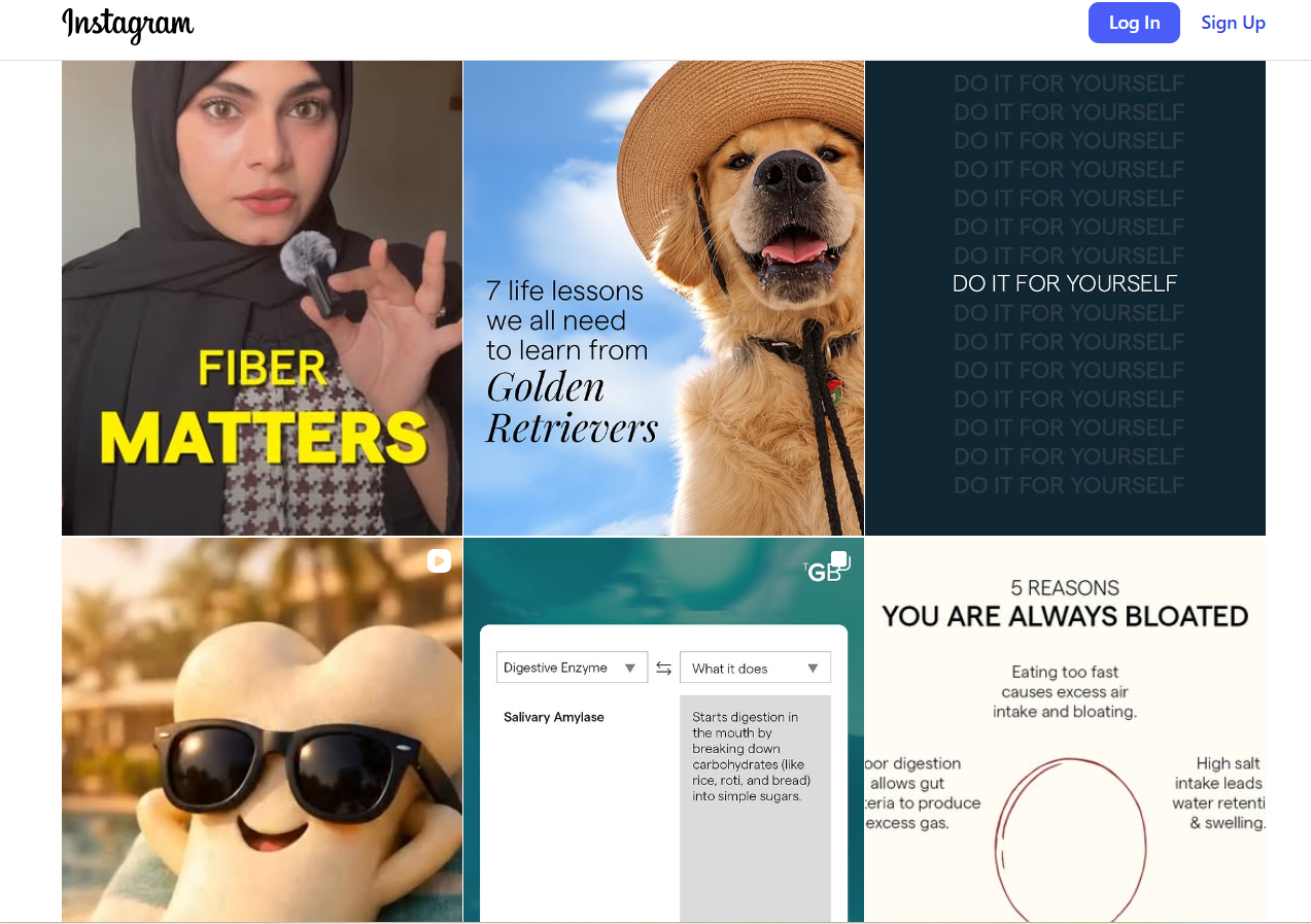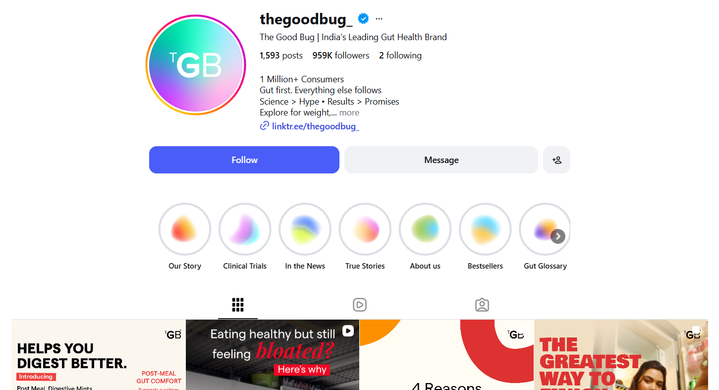 If there is one area where The Good Bug’s branding begins to unravel, it is social media, particularly Instagram. While the core brand identity is strong, its application across social content feels scattered and uncoordinated. The feed swings between multiple visual and tonal directions. Some posts feel playful and meme-led, others try to be scientific and clinical, while some rely heavily on influencer-style content. The result is a feed that lacks a clear visual system or brand voice. Over time, this inconsistency chips away at trust.