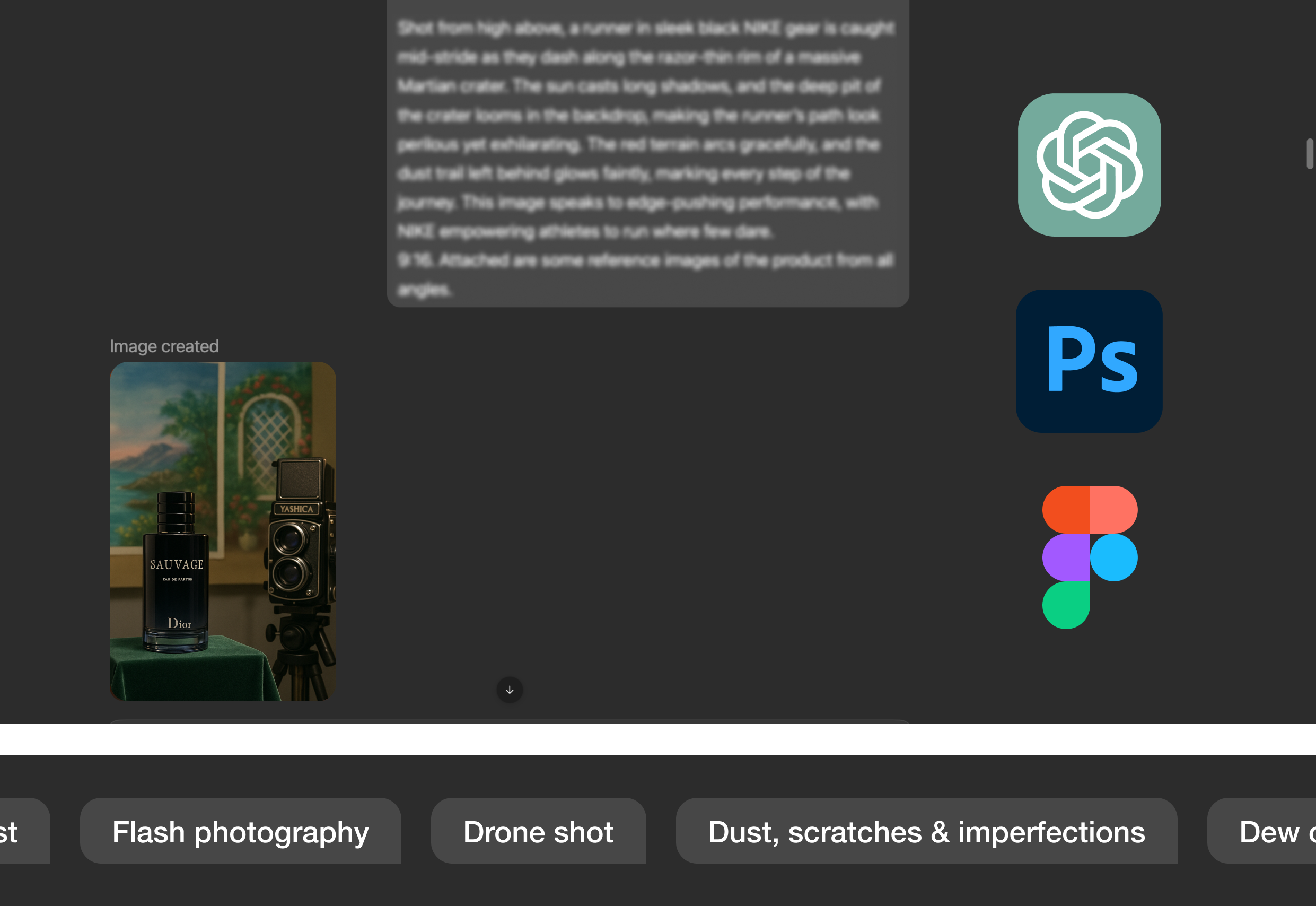 Sauvage, in particular, represents a balance of rugged masculinity and refined elegance. With this in mind, our AI-driven campaign had to remain faithful to Dior’s world, a realm rich in heritage, raw textures, deep shadows and high contrast.