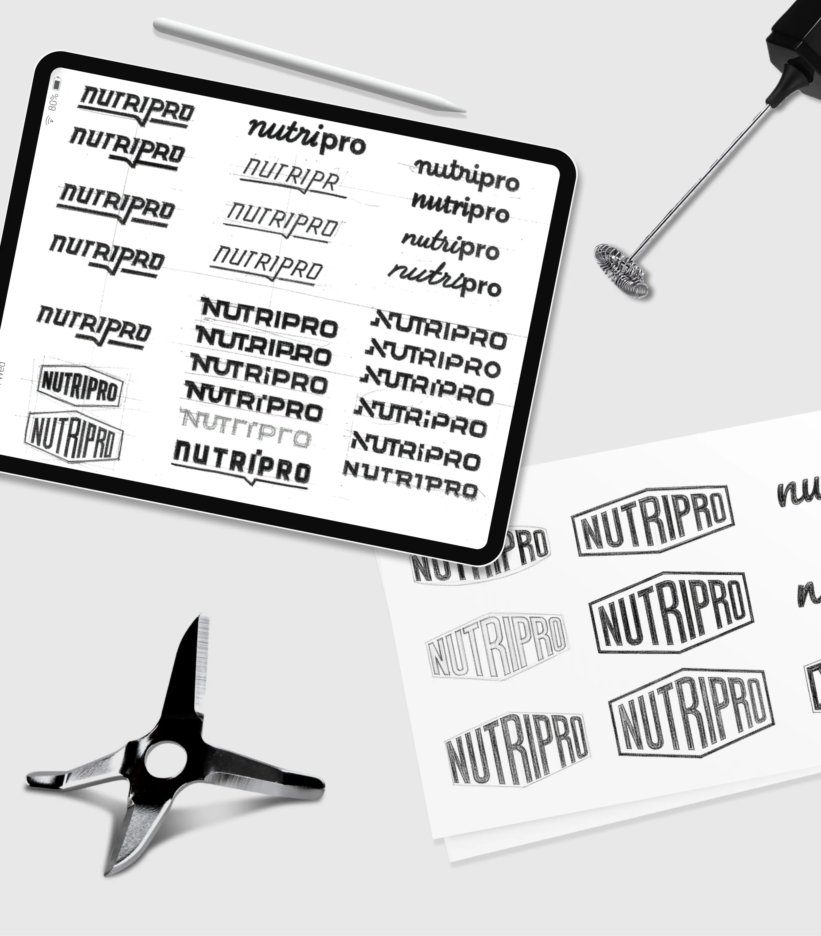 NutriPro’s packaging was designed to look as sharp and purposeful as the appliances inside it. We built a system that reflects the brand’s tech inspired identity without feeling cold or overworked: clean greys, whites and black anchored by NutriPro’s punch of red. Every box is structured to make the product instantly recognisable, with clear photography, legible typography and layouts that prioritise function over clutter. Since the brand offers multiple appliances, we created a flexible sticker system that changes with each product whether it is a blender, mixer, frother or bullet juicer keeping the range consistent while still easy to navigate. We also explored bold patterns and geometric forms that bring energy and movement to the packs without overpowering the design. The result is packaging that feels modern, practical and a system that stands out on shelf while staying true to the brand’s next generation aesthetic.