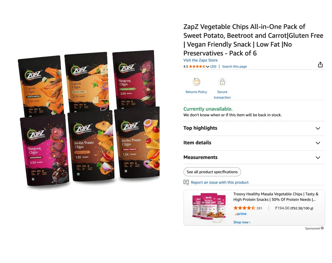 Every online pack is tested inside platform-specific environments such as Amazon, Flipkart, Nykaa, Myntra, or Ajio, depending on where the product will be sold. We place the client’s product directly next to competing brands from the same category and evaluate it the way a customer would see it: at thumbnail size, inside a grid, surrounded by similar options. This helps us test whether the brand name is readable, the category is instantly clear, and issues that never show up on a clean mockup become obvious here, allowing us to refine the packaging before it goes live.